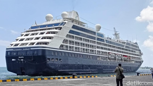 Kapal pesiar MV Azamara Journey sempat bersandar di Pelabuhan Benoa, Bali. Para penumpang cruise yang baru datang dari Australia itu langsung dikenakan retribusi atau pungutan turis asing yang masuk ke Bali.