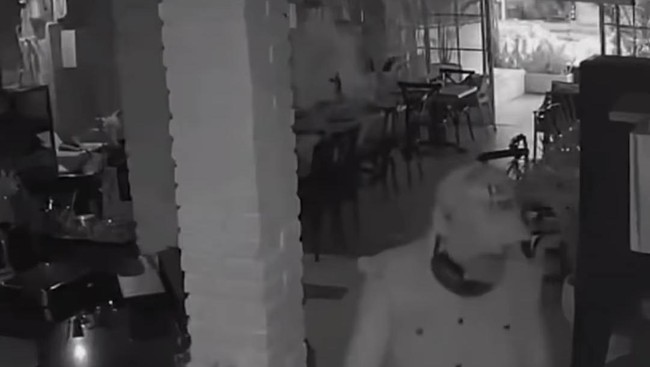 Karena tak berhasil menemukan seseorang yang ia cari, dia juga tampak menendang kursi-kursi restoran. Wajah pelaku tidak terlihat jelas dalam video itu.