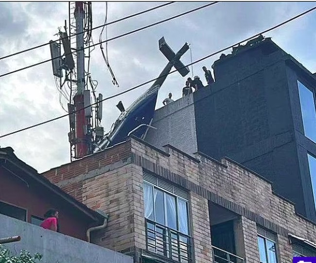 Helikopter itu menabrak gedung bertingkat di Medellin. Beruntung, semua penumpang dan awak selamat dari kecelakaan itu.