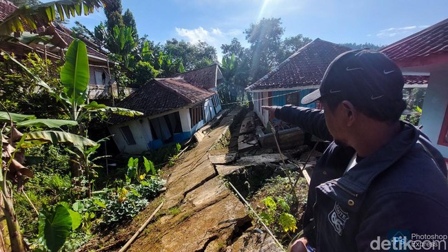 Tak cuma ambruk, sebagian rumah warga ada yang terangkat karena permukaan tanah jadi bergelombang. Jalanan di kampung itu juga rusak parah karena permukaannya ada yang amblas dengan kedalaman antara dua sampai empat meter. Satu bangunan sekolah dan posyandu tak lagi bisa digunakan karena rusak parah.
