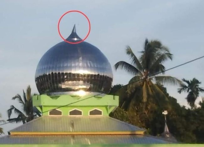 Pria itu kemudian merasa ada yang janggal saat memandangi masjid dari teras rumah. Hingga akhirnya dia menyadari kepala kubah masjid berlafaz Allah yang terbuat dari emas itu telah tidak ada di tempatnya.