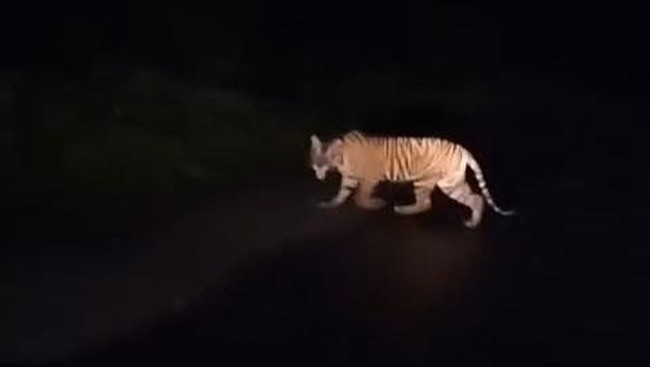 Si Raja Rimba, Harimau Sumatera kembali terekam kamera milik warga saat melintasi jalanan di Kabupaten Pesisir Barat, Provinsi Lampung.