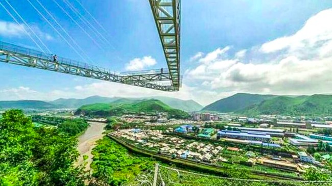 Di China, ada menara baja yang menjadi spot turis melihat kehidupan Korea Utara. Namun, menara itu kini ditutup karena keamanan.