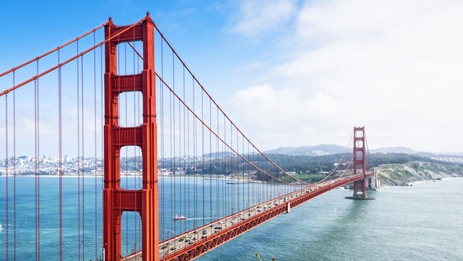 Jembatan Golden Gate merupakan jembatan ikonik San Francisco. Jembatan itu menjadi salah satu buruan turis asing saat pelesiran ke AS.