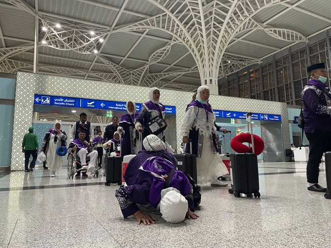 Rombongan haji kloter UPG 5 asal embarkasi Makassar, Sulawesi Selatan (Sulsel), akhirnya tiba di Tanah Suci. Keberangkatan jemaah sempat tertunda karena mesin pesawat terbakar setelah lepas landas.