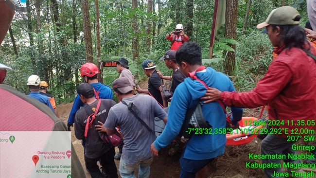 "Dibawa naik karena kalau kita bawa ke jalur pendakian via Pendem itu lebih sulit jalannya. Jadi, yang bisa kita lalui ya Sawit. Hampir 25 orang, kita tarik pakai tali-tali itu karena tidak terlalu di bawah. Dia (korban) berhenti (tertahan) pohon," pungkasnya.