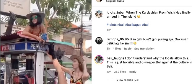"TANGKAP DAN USIR WNA SAMPAH !!!! Jeg ngae leteh gumi Bali nani cing. @pichrich_ You have disrespected our island, culture and tradition. We don't need trashy foreigner like you!!!!" Tulis Ni Luh dalam caption.
