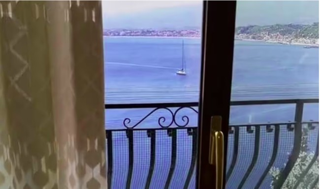 Murgia memperlihatkan kamarnya yang memiliki balkon dengan pemandangan ke arah pantai. Dari ujung kamar, pemandangan itu sungguh indah. Namun begitu mendekat, pemandangannya terlihat mencurigakan.