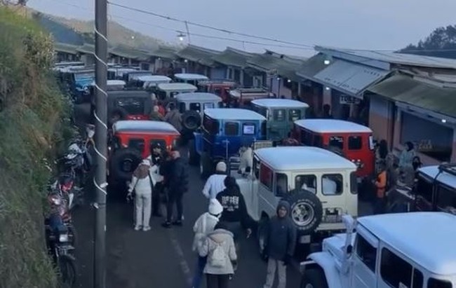Video penumpukan jip mengangkut wisatawan untuk melihat sunrise beredar di media sosial. Dalam video itu, puluhan jip berhenti di jalur menuju Penanjakan. Jip-jip itu bahkan menutup hampir seluruh badan jalan.