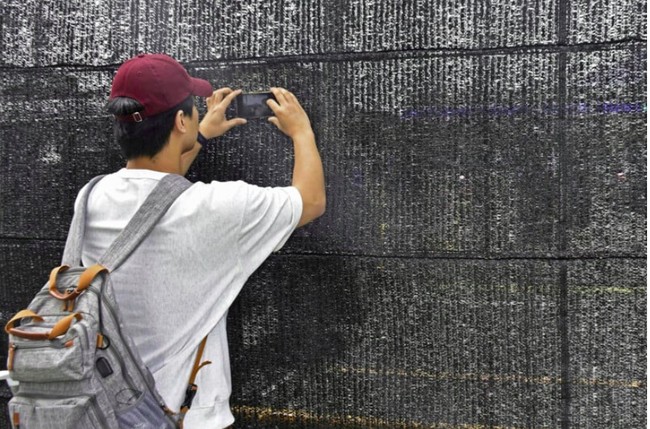 Layar sepanjang 66 kaki itu menghabiskan 1,3 juta yen atau Rp 133 jutaan dalam pembangunannya. Pada Kamis pagi, diketahui bahwa layar hitam itu telah bolong sebagai tempat lensa kamera wisatawan. Terdapat 10 lubang setinggi mata kaki di sepanjang layar.