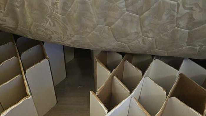 "Salah satu tempat tidur terbuat dari kardus dan juga disatukan dengan lakban," kata Rory.