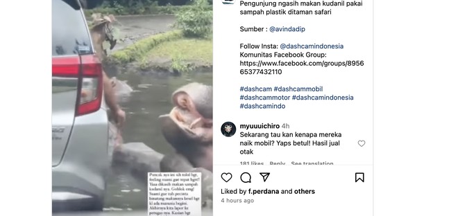 Namun, seseorang dari mobil itu malah melemparkan plastik sampah ke dalam mulut kuda nil malang itu. Terekam kuda nil itu menelannya.