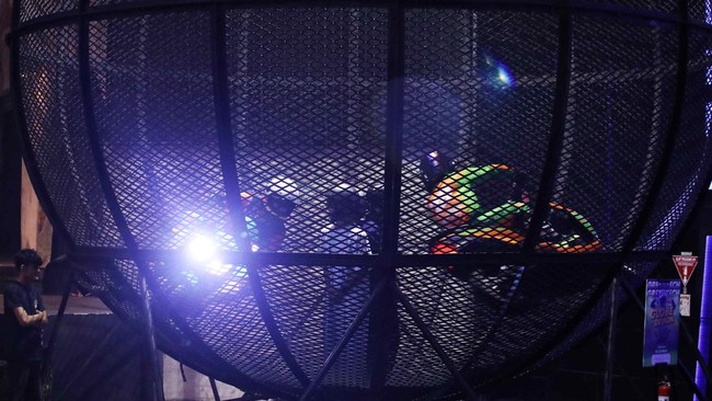 Nah yang menarik dan yang lebih bikin menegangkan lagi yakni adanya Globe of Demons alias Tong Setan. Yang membedakan tong setan di sini dengan tempat lain adalah motor yang digunakan merupakan motor listrik.