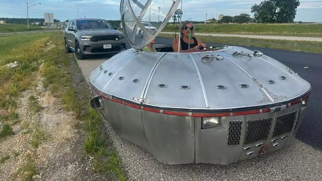 Kejadian aneh terjadi di Missouri, Amerika Serikat. Terlihat kendaraan berbentuk UFO melintas di jalan raya dan berakhir ditilang polisi.