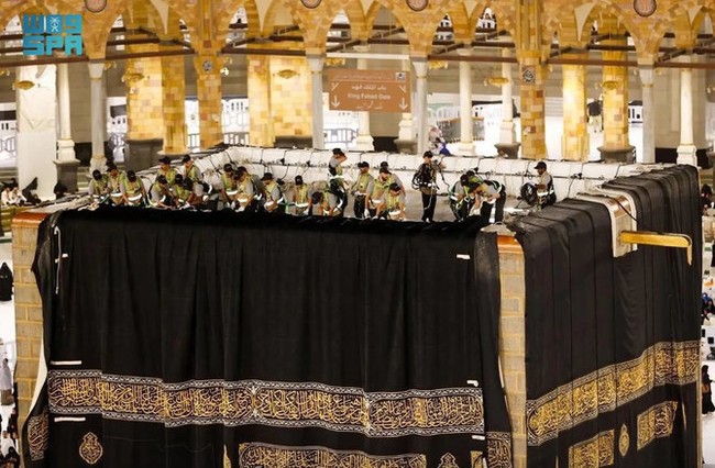 Hari pertama Tahun Baru Islam, Minggu (7/7) Ka'bah dipasangi kiswah baru. Konon biaya untuk pembuatan kiswah baru ini lebih dari Rp 86,7 miliar.