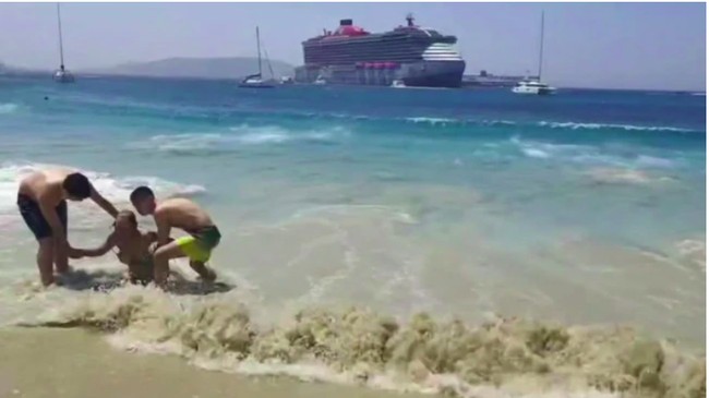 Rupanya, gelombang besar itu terjadi karena sebuah kapal pesiar lewat. Kapal itu milik Fast Ferries Andros, sebuah layanan transportasi lokal.