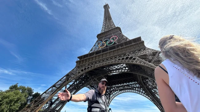 "Seorang pria memanjat Cincin Olimpiade di Menara Eiffel. Anda bisa melihatnya di cincin biru," tulis salah satu pengguna di X.