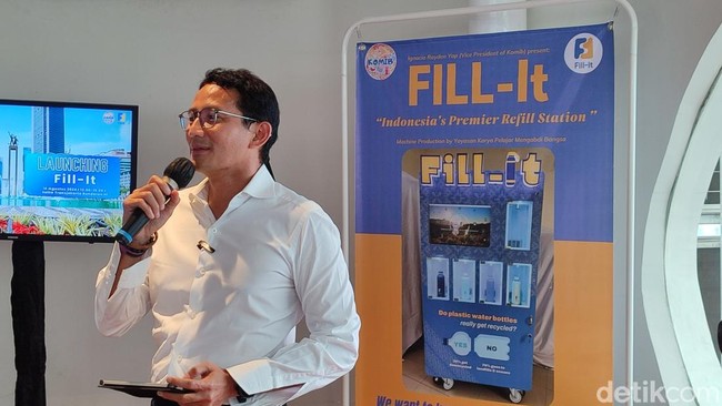 Menteri Pariwisata dan Ekonomi Kreatif (Menparekraf) Sandiaga Salahuddin Uno meresmikan mesin air isi ulang Fill-It. Dia memuji fasilitas itu sebagai langkah menuju Indonesia hijau.