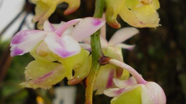 "Anggrek ini juga memiliki dagu bunga (spur) yang melengkung dan biasanya berisi cairan nektar bagi serangga penyerbuk," kata dia.