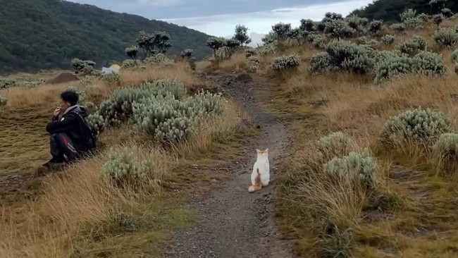 Diduga kucing gemoy tersebut berada di kawasan yang bukan habitatnya lantaran dibawa oleh salah seorang pendaki. Kucing berwarna putih dan oranye itupun tampak sehat dan gemuk, sehingga begitu lucu saat berjalan di tengah padang rumput di kawasan Alun-alun Suryakencana.