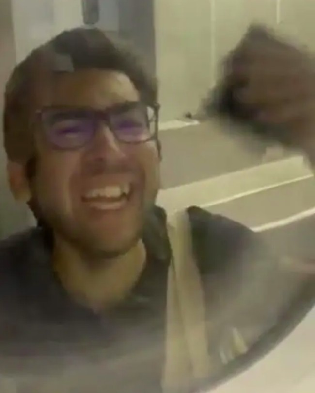 Dalam video Instagram berdurasi tiga menit yang direkam oleh salah satu penumpang, pria itu terekam bertingkah kekanak-kanakan dengan menendang pintu pesawat sambil terlihat menangis.