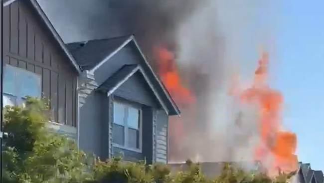 Insiden mengerikan terjadi di Fairview, Oregon, Amerika Serikat. Pesawat jatuh menabrak sebuah rumah dan membuat kebakaran.