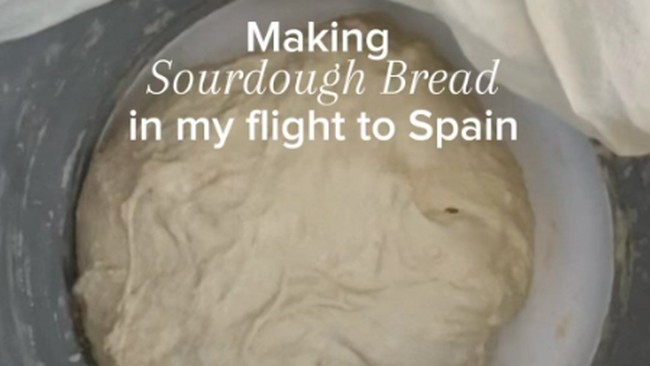 Pelancong sekaligus influencer Maria Baradell melakukan aksi tak biasa. Ia membuat adonan kue dalam pesawat yang tengah terbang.