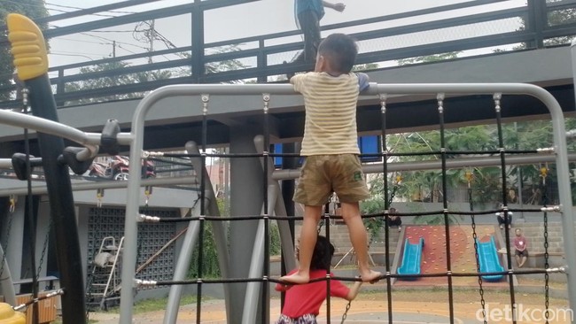 Di sana terdapat beragam wahana permainan anak, mulai dari perosotan, ayunan, jaring panjat, dan wahana lainnya. Saat detikTravel berada di taman ini, Kamis (12/9/2024) suasana ramai telah tercipta di taman ini.