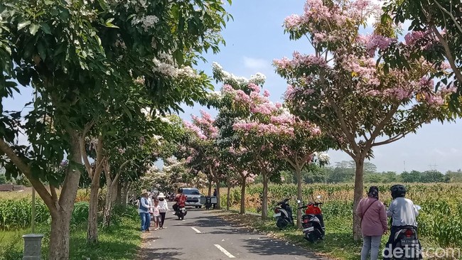 Gara-gara deretan bunga tabebuya yang bermekaran dengan cantiknya, sebuah jalanan desa di Klaten, Jawa Tengah jadi wisata dadakan yang dikunjungi banyak orang.