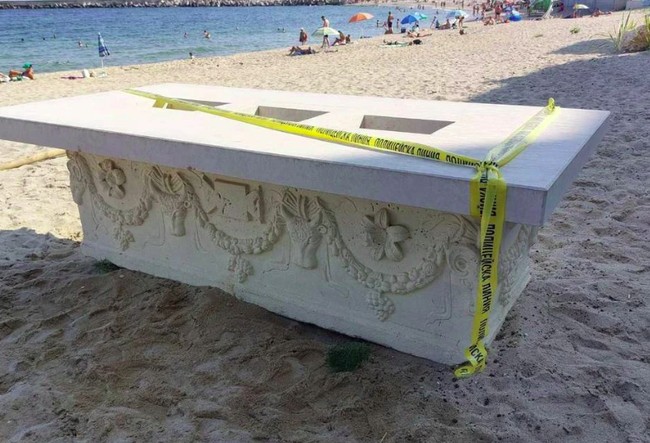 Ternyata meja bar itu adalah sarkofagus atau kubur batu Romawi dari abad kedua masehi yang ditaksir berumur 1.700 tahun.. Menurut para pejabat, sarkofagus tersebut berukuran panjang sekitar 9,8 kaki, lebar 8,2 kaki, dan tinggi 3,3 kaki.