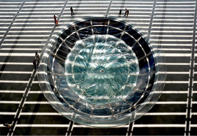 Air terjun yang dimaksud adalah pusaran air hujan yang disebut Rain Oculus, yang terdiri dari sebuah kolam di bagian bawah mangkuk akrilik besar, yang berdiameter 21 meter dan kedalaman 5,2 meter.