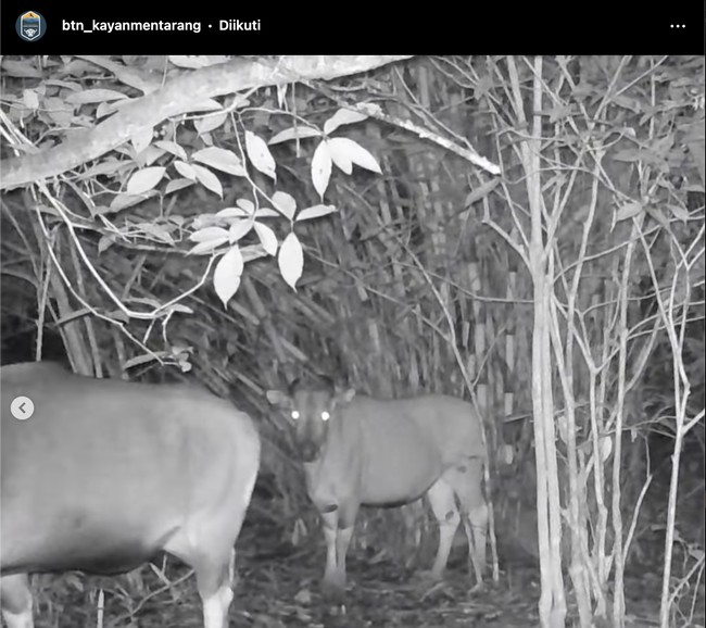 "Dua ekor banteng Kalimantan (bos javanicus lowi) kembali terekam kamera trap di wilayah Sungai Beraha, Desa Long Berini, SPTN Wilayah II Long Alango," kata Taman Nasional Kayan Mentarang dikutip dari Instagram resminya, Minggu (20/10/2024).