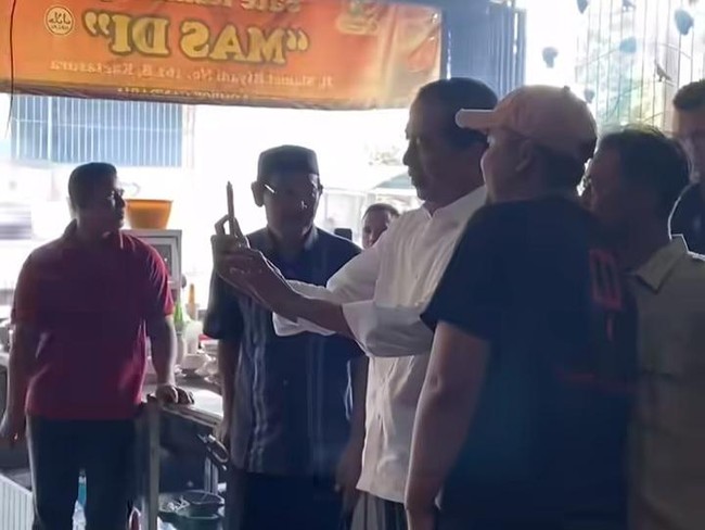Kedatangan Jokowi itu sempat dibuat story di akun Instagram @masdisate. Dari video yang diunggah, memperlihatkan Jokowi tengah berswafoto dengan warga di warung makan Sate Kambing Mas Di. Nampak, Jokowi mengenakan kemeja putih dan celana panjang bahan warna hitam.