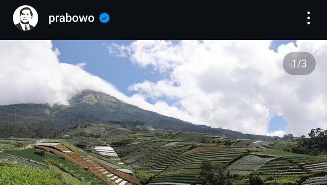 Tak diketahui apakah Presiden ke delapan RI itu sempat singgah ke daerah yang terkenal dengan terasering yang indah tersebut. Di Instagram Prabowo terlihat tiga foto yang memanjakan mata dengan pemandangan hijau terasering dan gagahnya Gunung Sumbing.