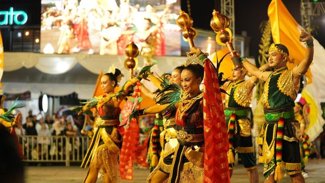 Arak-arakan peserta karnaval memadati area Jalan Sudirman hingga Jalan Margo Utomo. Aneka pakaian hias dan nuansa lokal sangat jelas menggambarkan pentingnya pelestarian budaya di tengah modernisasi zaman.