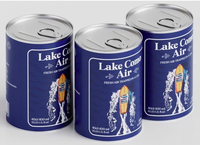 Kaleng-kaleng ini dilabeli dengan tulisan 'Udara Danau Como' 'Udara yang dikemas dalam kemasan'. Setiap kaleng dikatakan berisi 400 mililiter "udara 100% asli" yang diambil dari Danau Como.