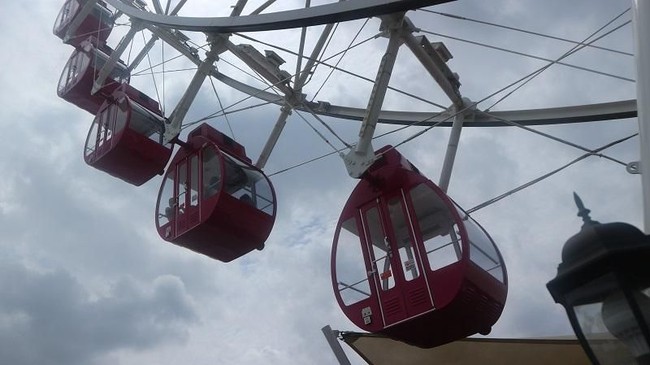"Bianglala nya aman sih, sejujurnya saya takut juga tinggi banget tapi ga begitu karena tertutup jadi angin nggak banyak gerak goyang-goyang ini bianglalanya, terus adem ada AC-nya," kata Yona, salah satu pengunjung.