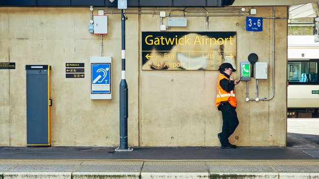 Gatwick memiliki stasiun kereta api bandara tersibuk di Inggris dengan lebih dari 50.000 penumpang setiap harinya, namun kereta tidak dapat berhenti di bandara selama peringatan keamanan. Penumpang yang tiba dengan kereta harus mencari alternatif seperti berhenti di Stasiun Horley yang jaraknya 30 menit berjalan kaki menuju terminal utara atau menggunakan taksi dengan biaya sekitar 30 pound sterling untuk perjalanan dua mil.