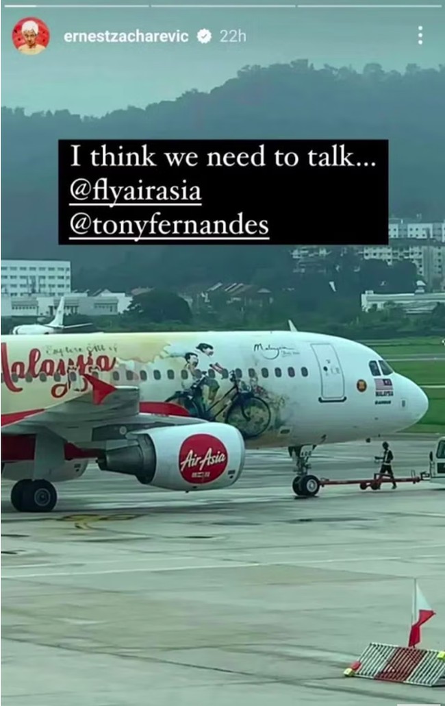 Ia mengatakan dia di bandara pada 22 November. Dia memotretnya kemudian mengunggah foto itu, lantas menandai AirAsia dan Tony Fernandes dengan caption "Saya rasa kita perlu bicara".