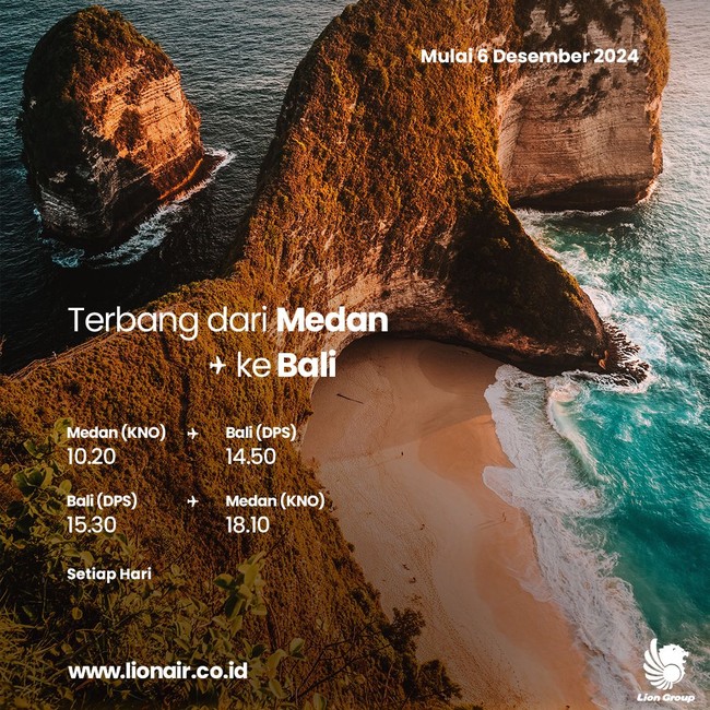 Dalam siaran resmi Lion Air, Minggu (1/12/2024), mereka meluncurkan rute penerbangan langsung non-stop dari Bali (Bandara Internasional I Gusti Ngurah Rai) ke Medan (Bandara Internasional Kualanamu). Penerbangan harian ini, menjadi opsi perjalanan praktis.