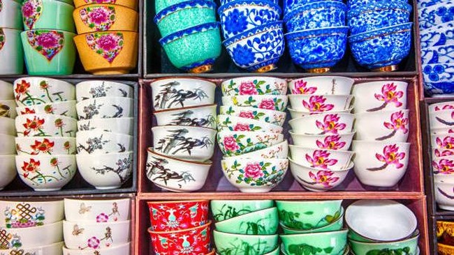 Peralatan minum teh khas Negeri Tirai Bambu seperti teko, cangkir, dan aksesoris lainnya yang dapat dibawa pulang sebagai buah tangan juga mudah ditemukan di sana.
