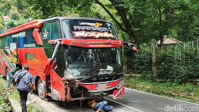 Bus tersebut, kata Kuswanto, menabrak tembok pembatas jalan lalu terperosok ke parit. Menurut polisi, dugaan penyebabnya bukan rem blong seperti yang ramai dinarasikan di media sosial.