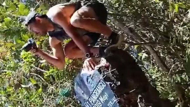Berdasarkan video yang beredar di media sosial, pendaki laki-laki berjongkok di atas tugu bertuliskan MT Pangrango 3.019 Mdpl.