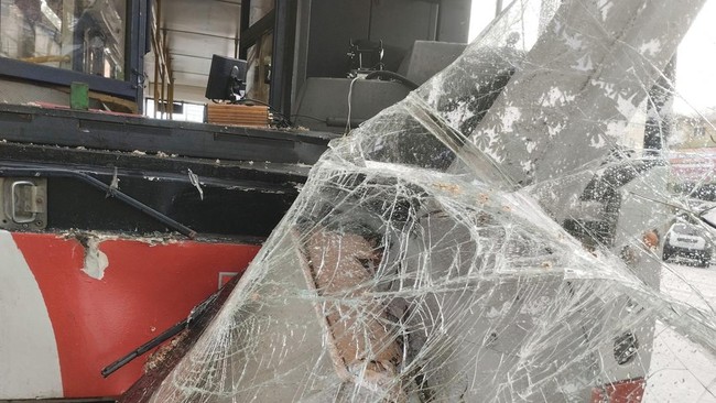Rekaman kamera keamanan menunjukkan bus melaju dengan cepat dan berpindah jalur dari gerbang tol yang tertutup menuju gerbang tol yang terbuka, yang menyebabkan tabrakan.