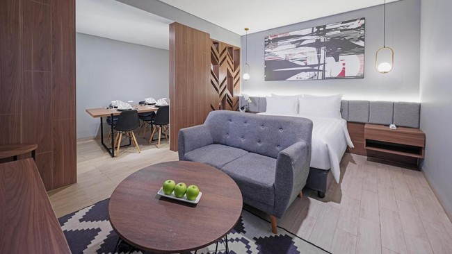 "Di sekitar airport ada bermacam hotel, dari hotel budget sampai five star, tapi kita punya easy access, konsep yang modern kontemporer dan juga ballroom yang jadi poin bagus," ujarnya.