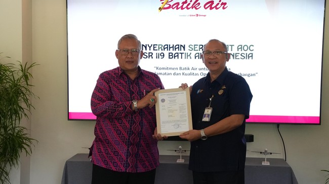 "Sertifikat ini merupakan pengakuan resmi atas kemampuan Batik Air dalam menjalankan pengoperasian pesawat udara untuk kegiatan angkutan udara, sesuai regulasi Civil Aviation Safety Regulation (CASR) yang berlaku," ujar Corporate Communications Strategic of Batik Air, Danang Mandala Prihantoro dalam keterangan resmi pada Rabu (22/1).