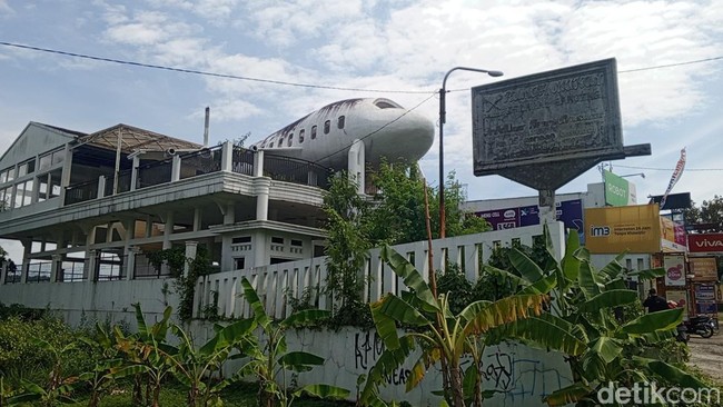 Bangunan tersebut merupakan milik Cecep Sobandi. Sejak dibeli pada tahun 2014 lalu itu, bangunan dibuat seperti ada pesawat terbangnya untuk menarik perhatian masyarakat. Sebab, memang bangunan ini dulunya restoran makan Sunda.