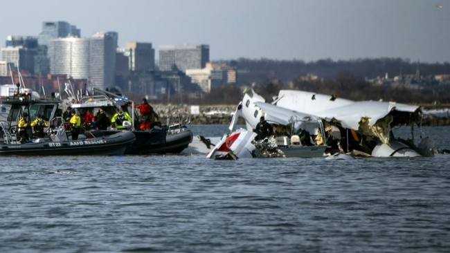 Sebanyak 67 orang di dalam kedua pesawat tewas dalam tabrakan Rabu malam itu. Para kru telah menemukan dan mengidentifikasi sedikitnya 55 mayat saat melakukan pencarian di Sungai Potomac. Kecelakaan itu menandai bencana udara AS paling mematikan dalam hampir 25 tahun.