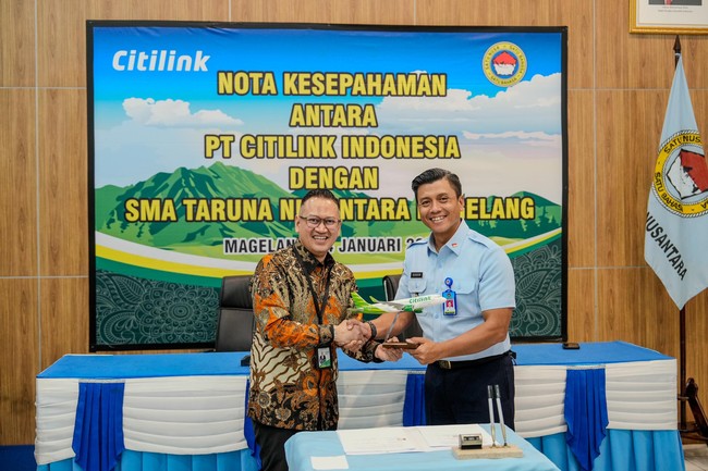 Maskapai penerbangan Citilink melakukan penandatanganan nota kesepahaman (Memorandum of Understanding/MoU) dengan SMA Taruna Nusantara di Magelang.