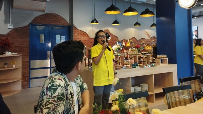 "Yang paling signature, Nasi Goreng Yello. Itu memang best seller-nya kita. Range harga murah, dari Rp 25.000 sampai 80.000 itu kita ada. Menu Rp 25 ribu itu mulai dari Indomie, kita juga ada menu Rp 37 ribu untuk menu ricebowl. Itu udah paket, termasuk makanan dan minuman," jelas wanita berkacamata ini.